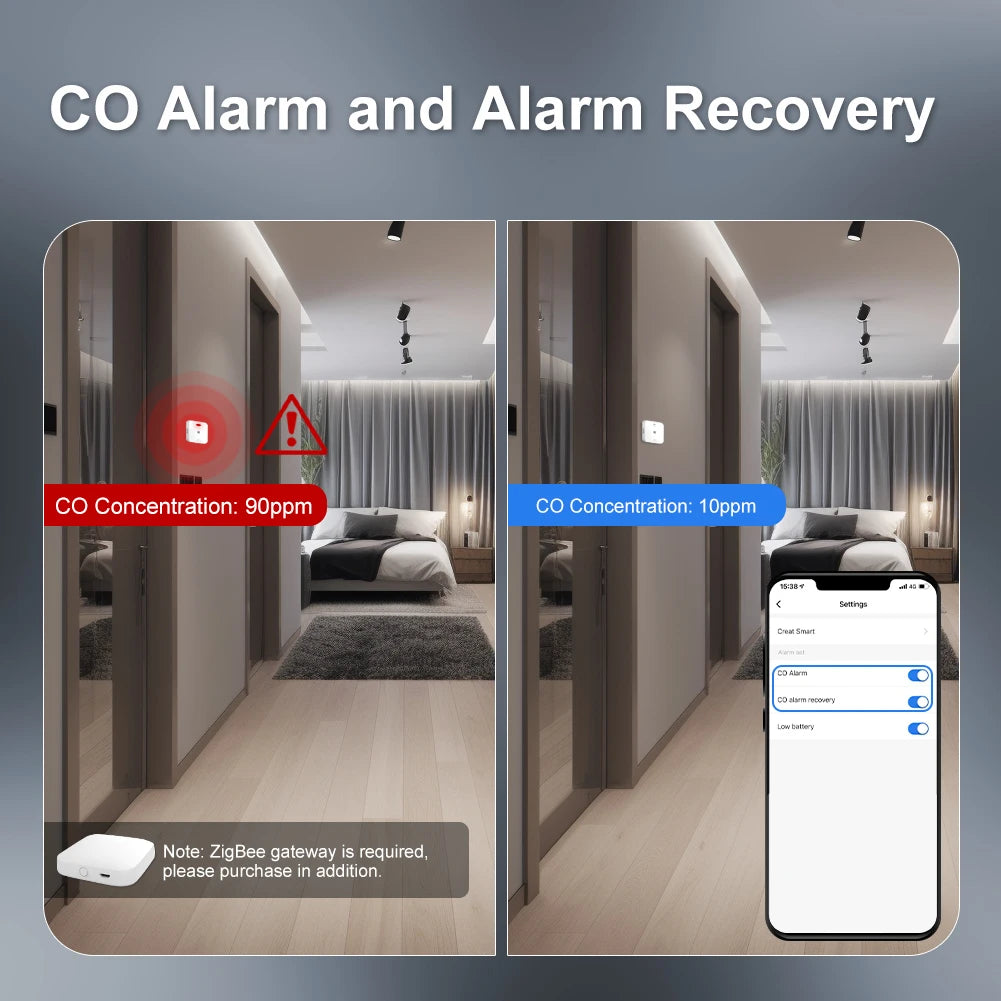 ENGIES Tuya ZigBee CO Detector Alarm Gas Leak Carbon Monoxide Detector Wireless Household Gas Siren Alarm Sensor Smart Safety Home