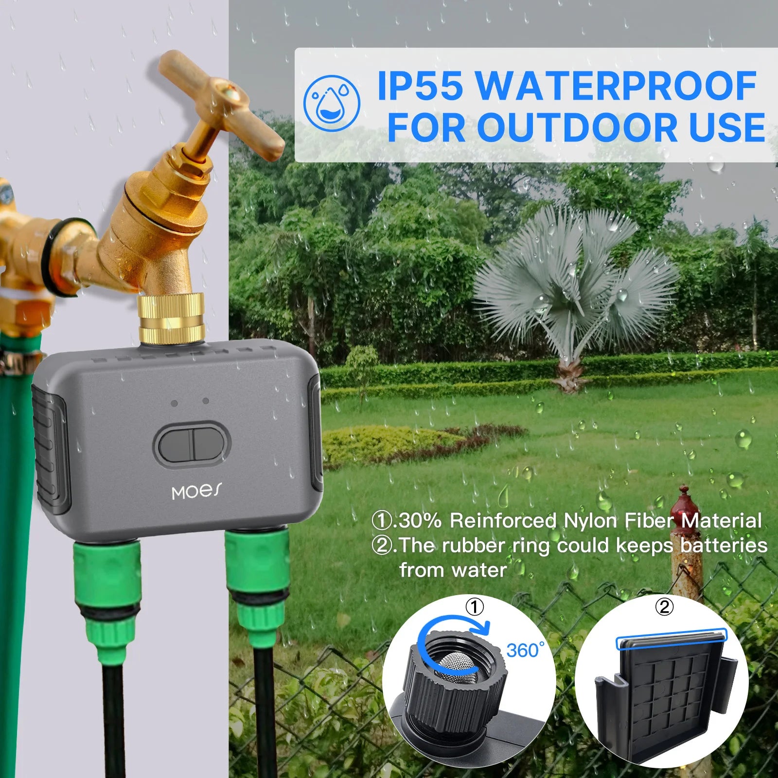 No matter at home or outside, you can control the irrigation by MOES App for instant operation and realizing hands free.