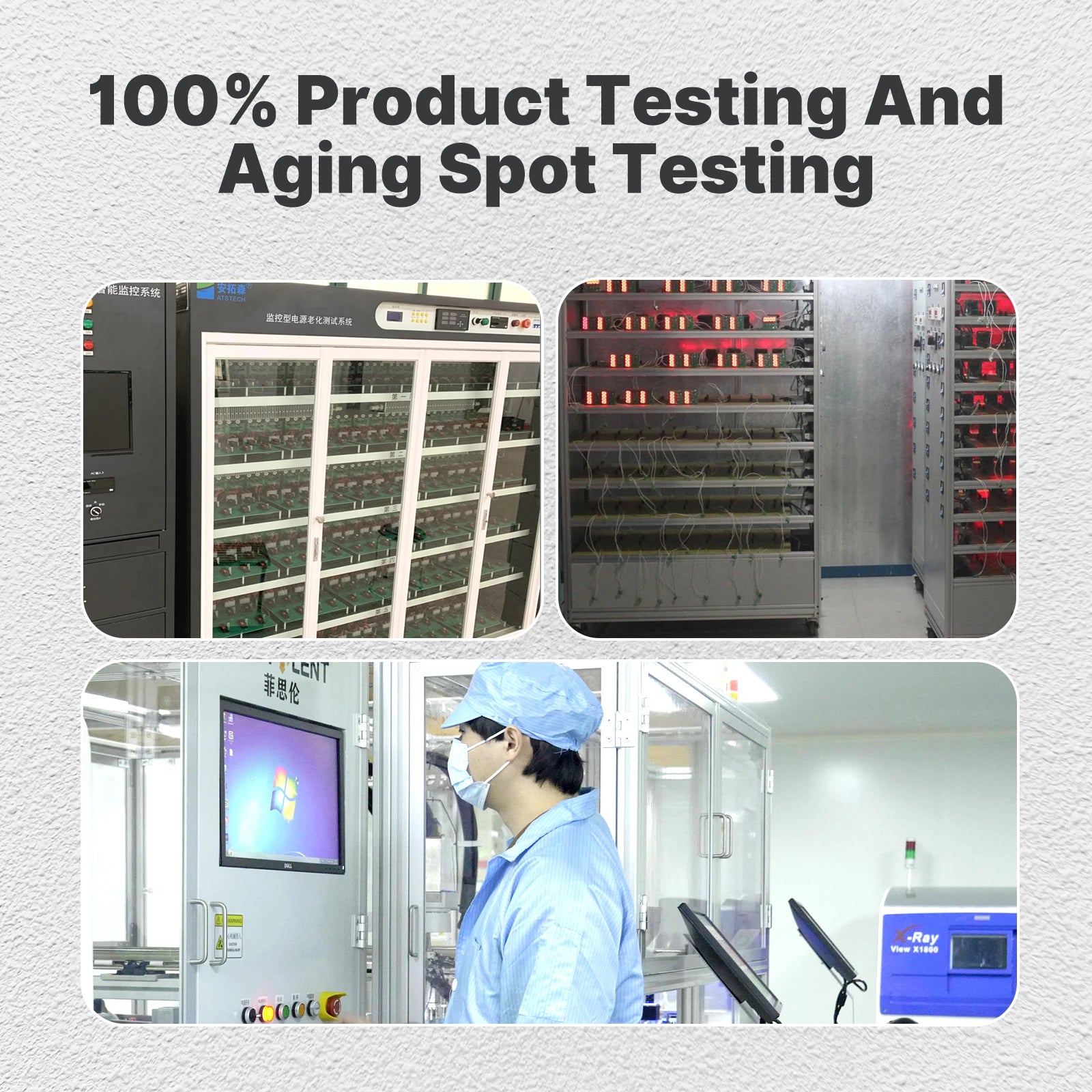 100% product testing and aging spot testing