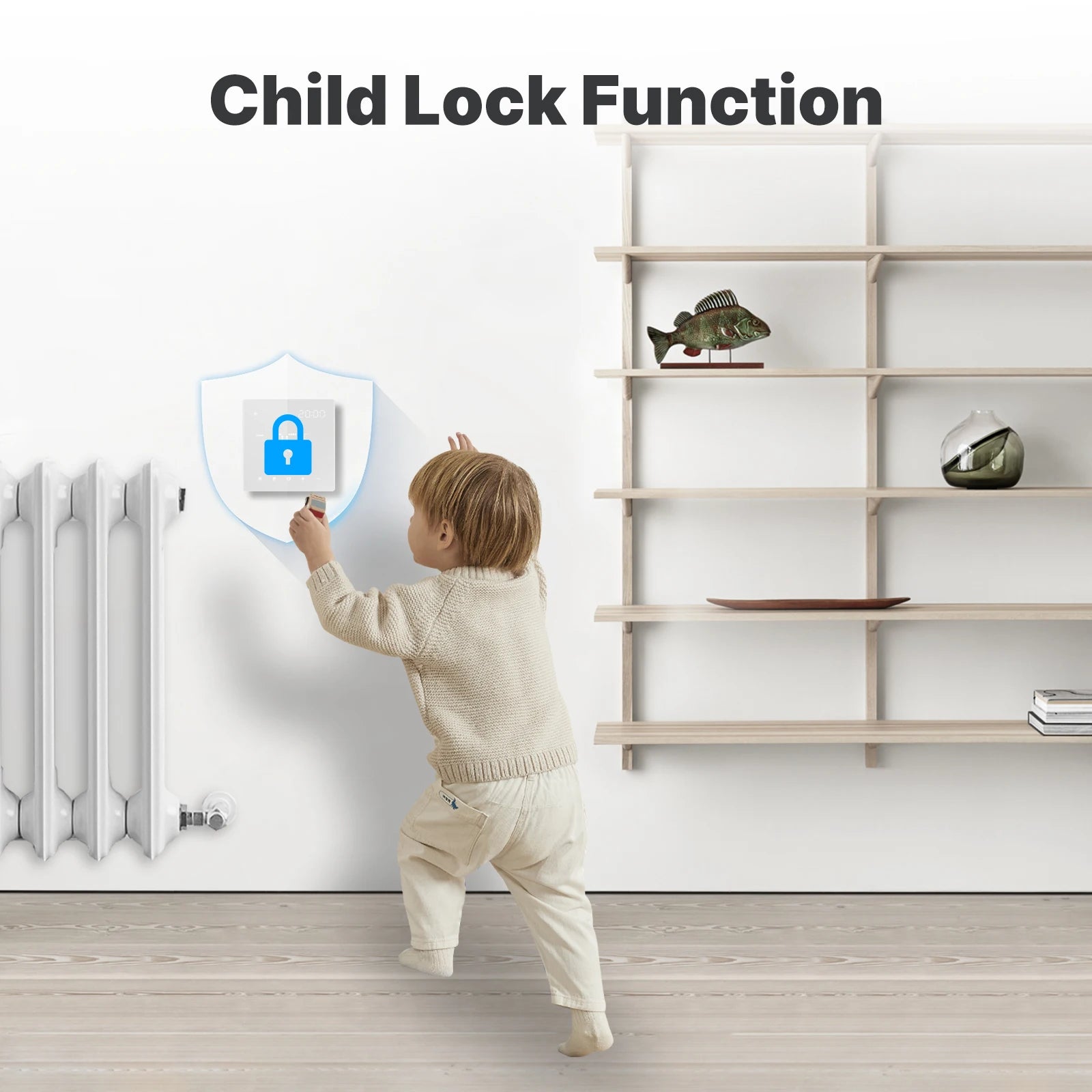 In order to avoid the danger or waste of electricity caused by children touching the switch by mistake, the child lock can be activate by App.
