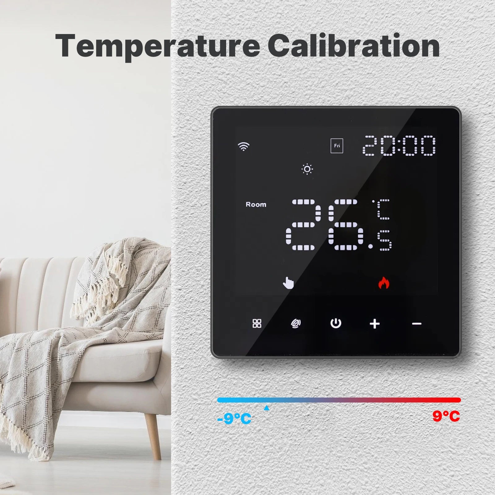 In case of the temperature variation between the floor and the air, you can set the calibration value by App, to make sure the final temperature reaches your ideal value.