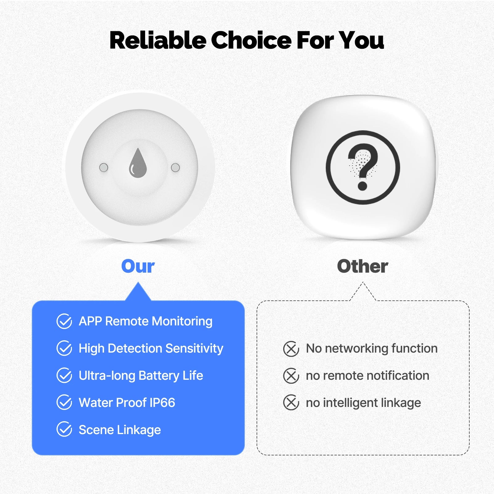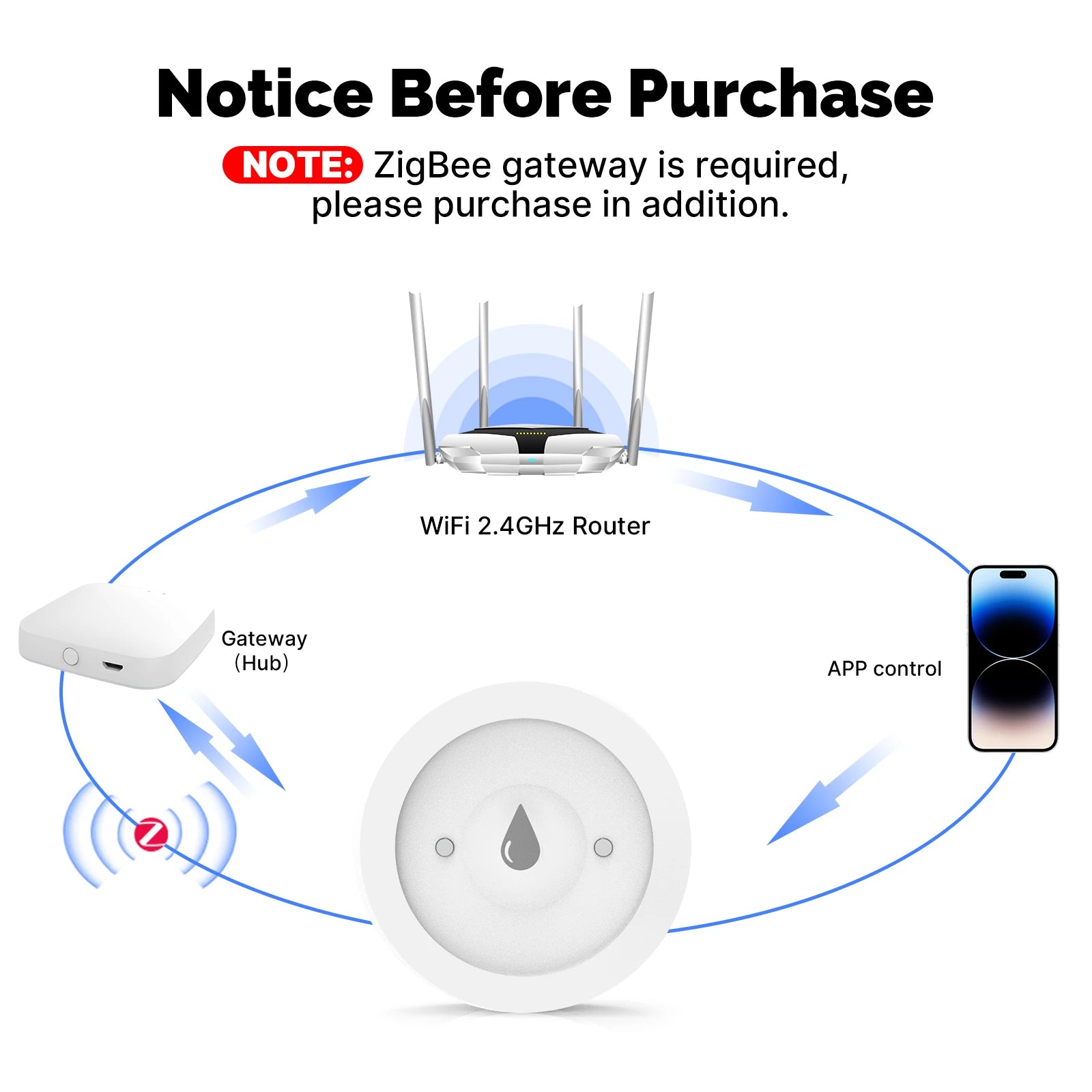 Smart linkage: The valve will close automatically when the sensor detects the water leak.(Valve not include)