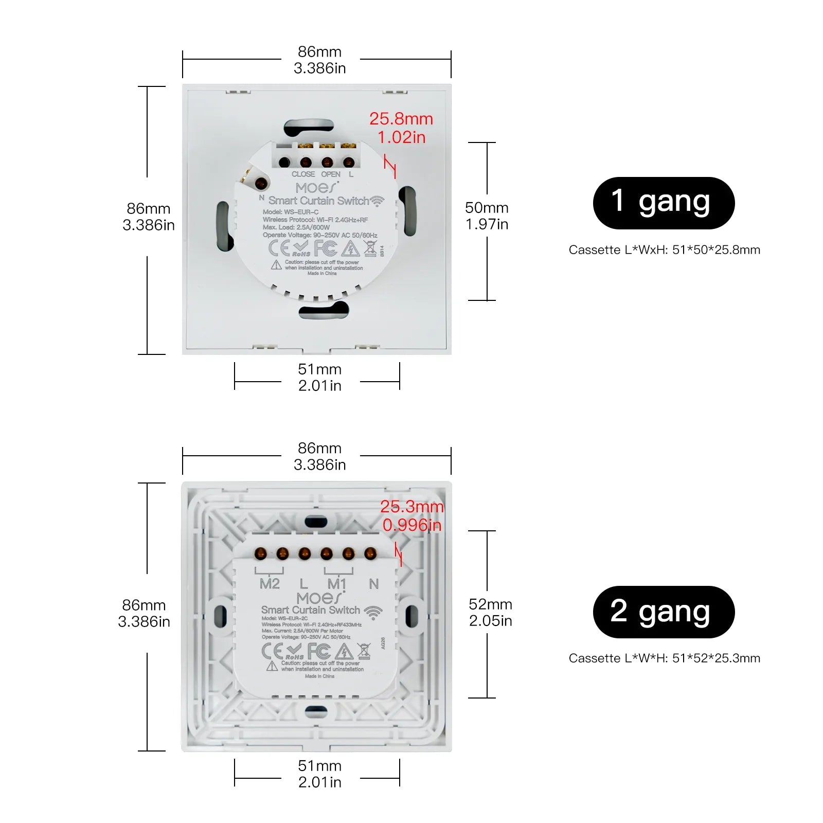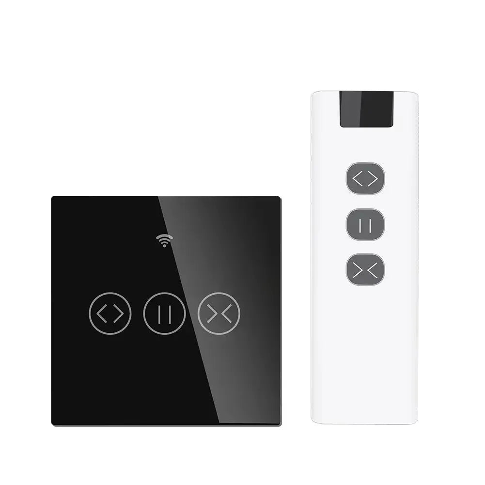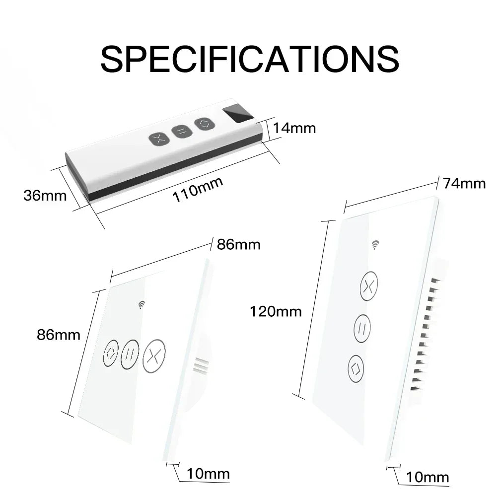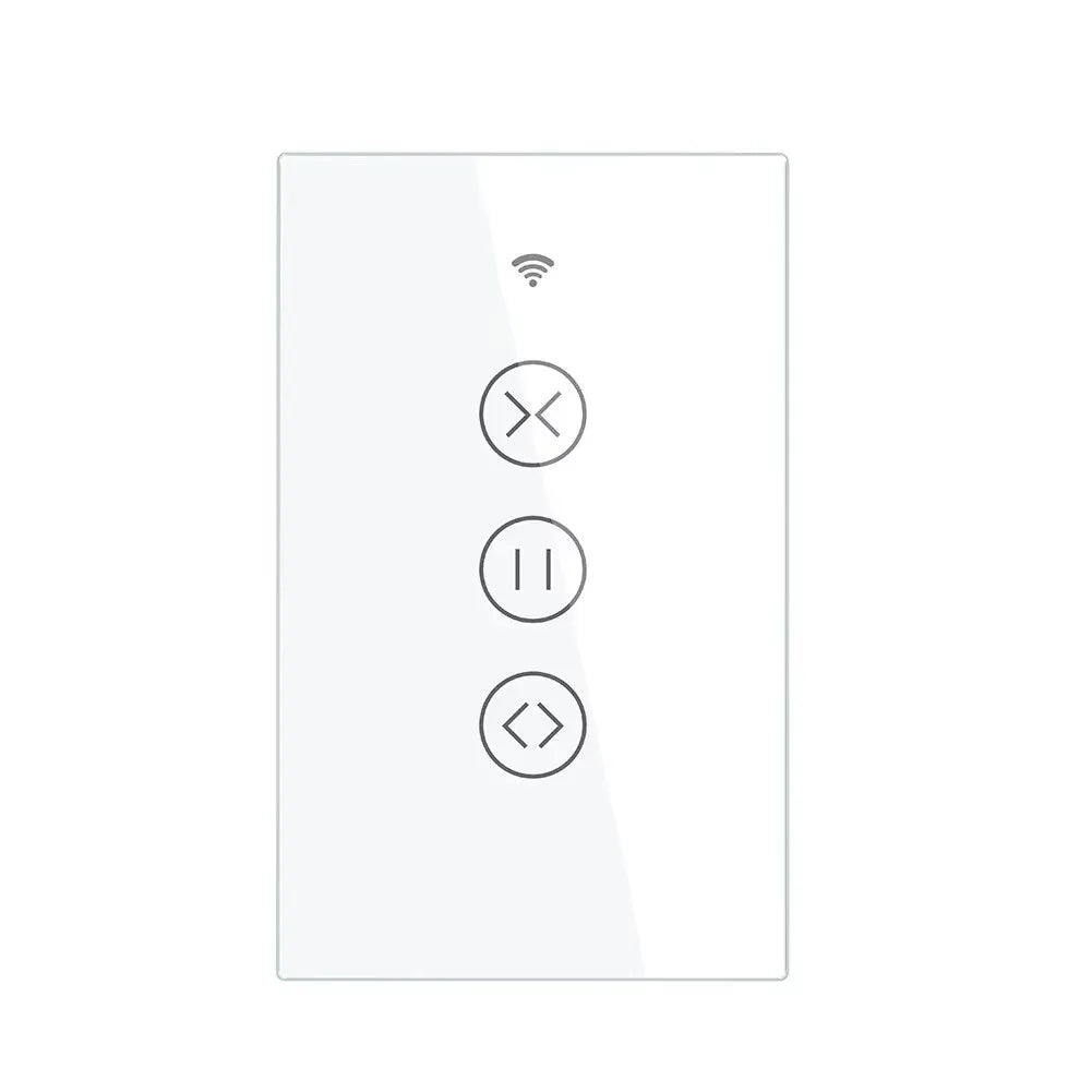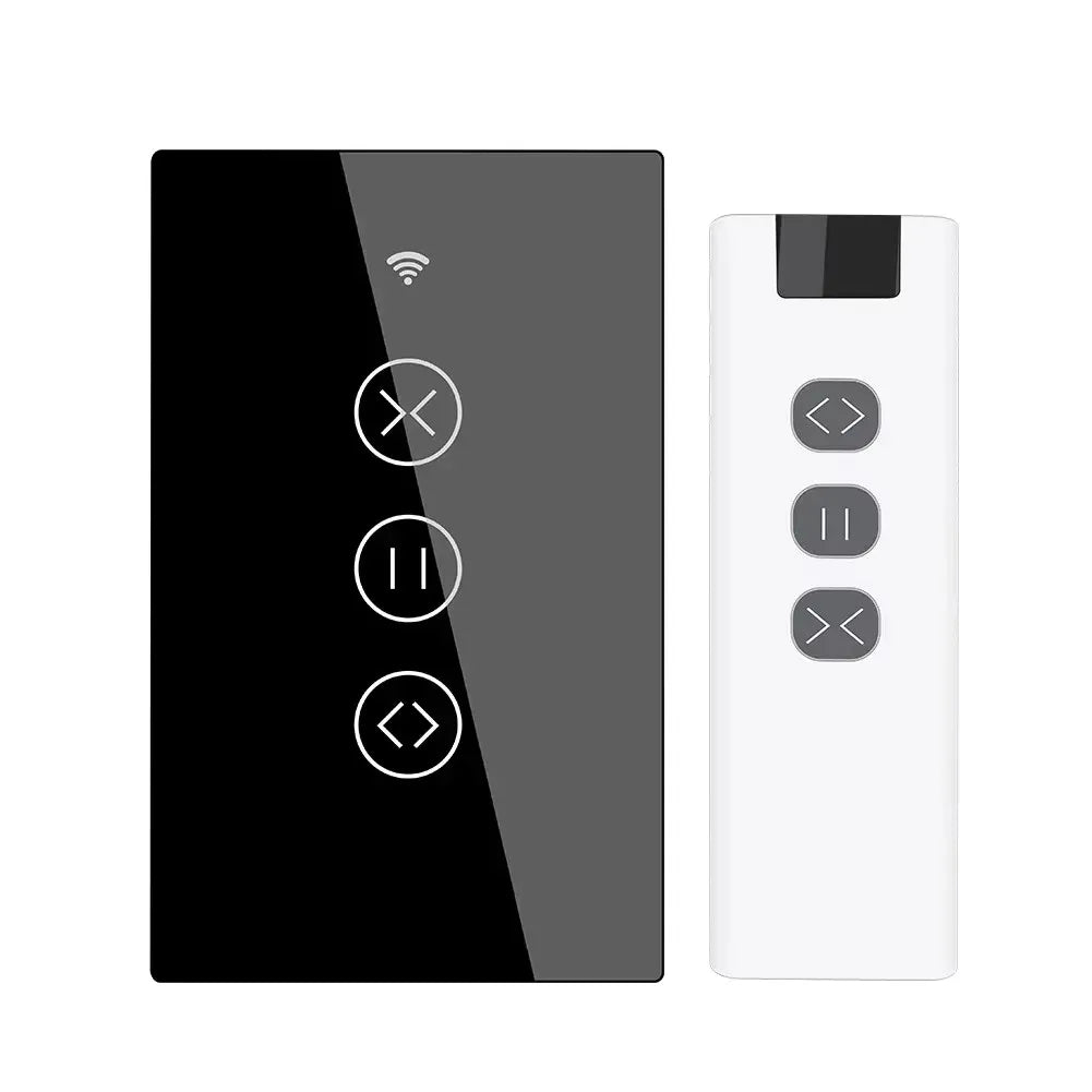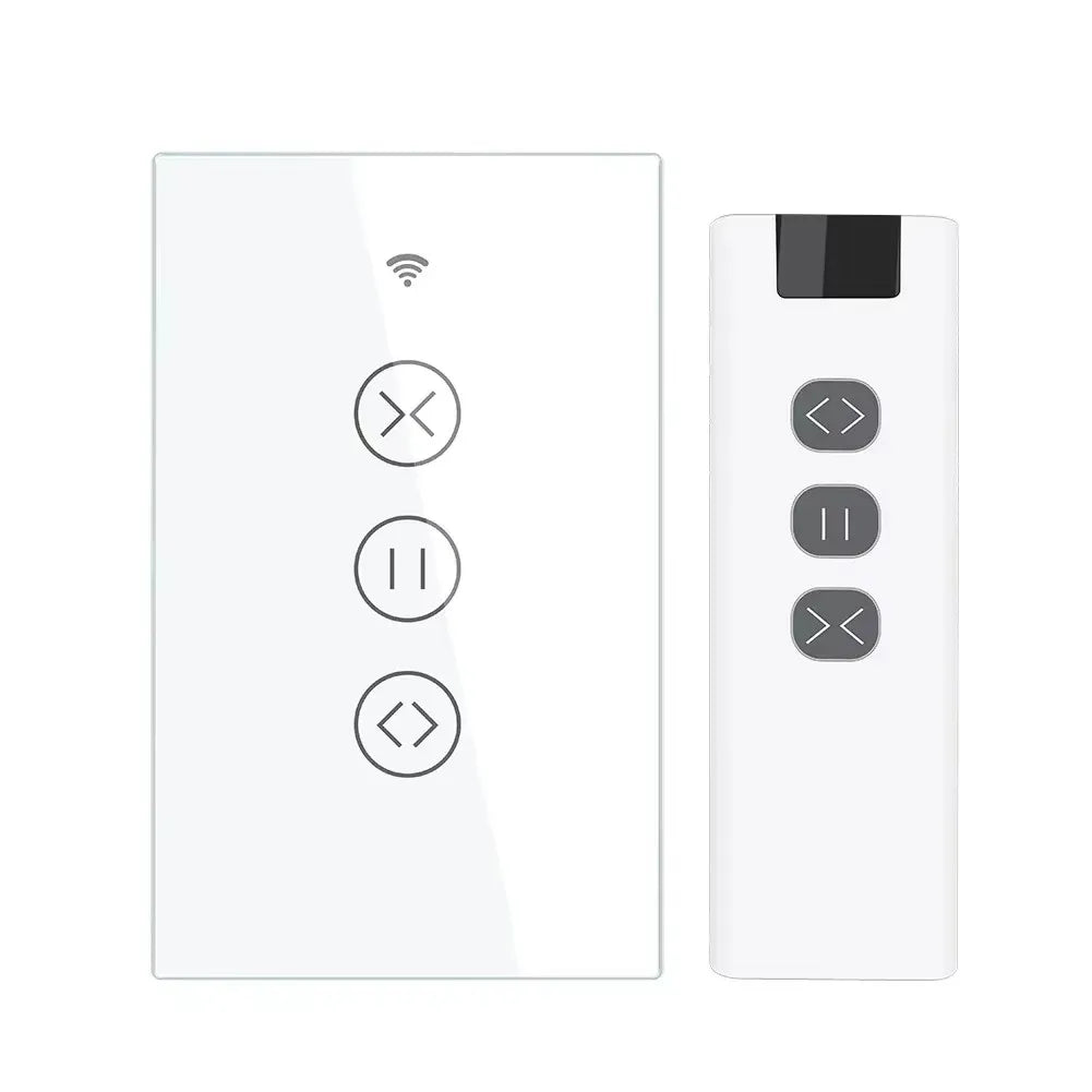 EU US WiFi RF433 Smart Touch Panel Curtain Blinds Roller Shutter Switch(2/3 Way) Multi-Control Tuya Smart Life App Relay Status and Backlight Switch Wireless MHz433 Remote Control Motorized Curtain Motor Needed,Works with Alexa Echo Google Home