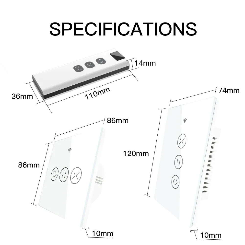 1.Easily transform your house into a smart one with the new powerful functional smart curtain switch;2/3-way multi-control association to control 1 roller blinds,shutter curtain with multiple curtain switches;Intelligently control our roller blinds,shutter curtains in a much easier way with multiple controlling modes;RF remote and manual control your curtains optional and available meanwhile with RF frequency built in,so as group control multiple switches with one Remote switch;achieve multi-control by associating to other smart switches;can work with smart curtain motor for roller shutter/blinds to realize automation for all curtains at home;add motorized shades or other similar devices to your smart home with Smart Curtain Motor!(Note:the curtain motor is not included in the package,you need a self-purchase of it;RF remote control switch is included in the package.)