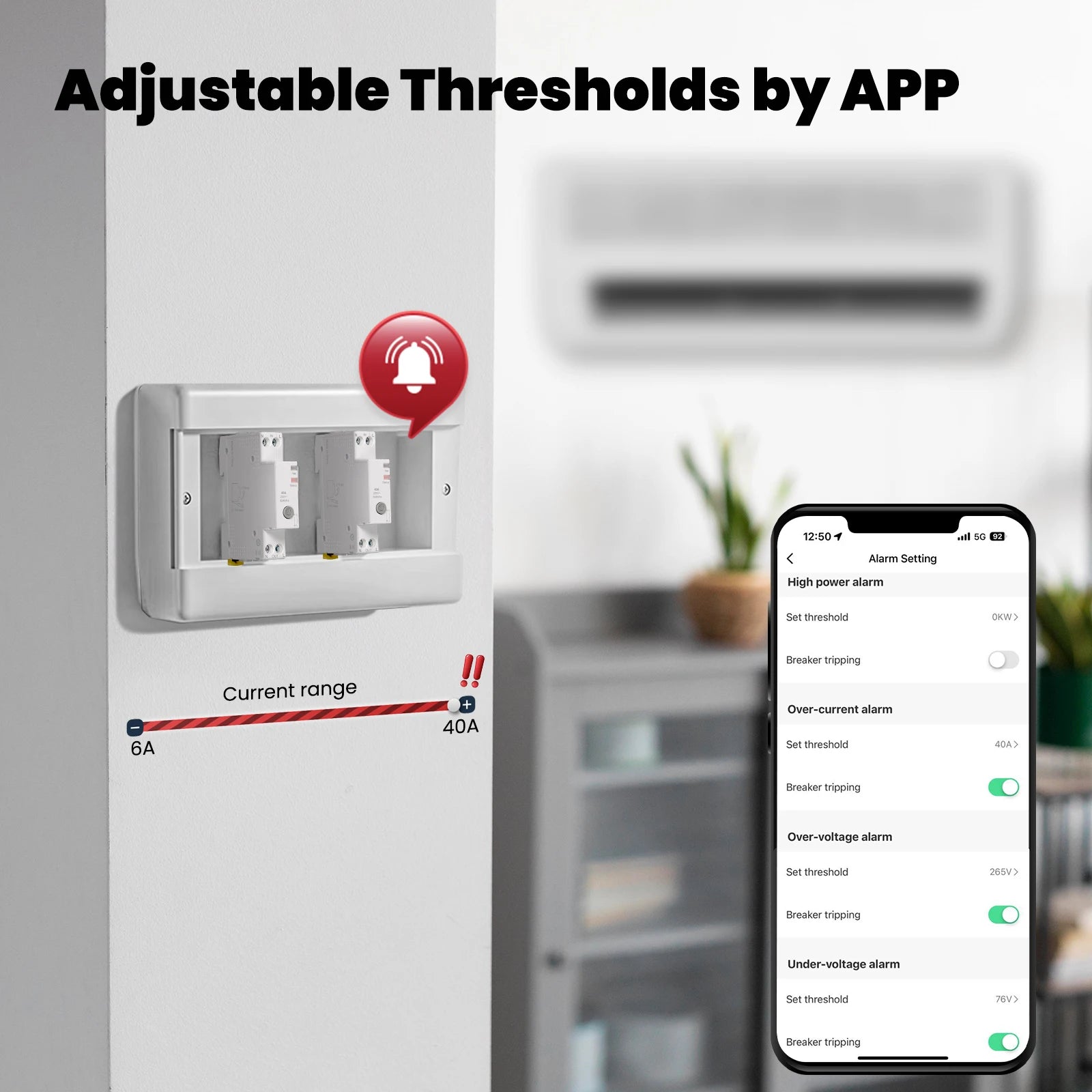 Adjust alarm thresholds via MOES APP for flexible electrical safety management.